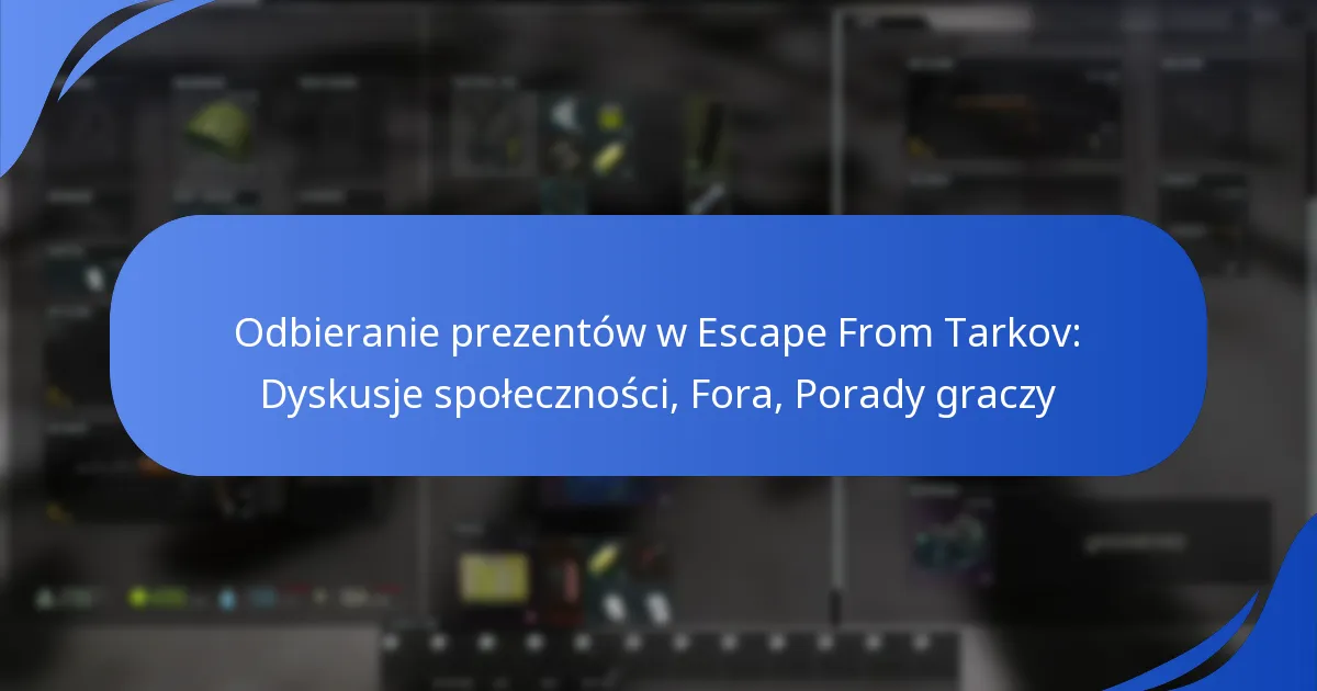 Odbieranie prezentów w Escape From Tarkov polega na prostym procesie, w którym gracze mogą otrzymywać nagrody za udział w specjalnych wydarzeniach lub promocjach. Zrozumienie kroków, kryteriów kwalifikacji oraz powszechnych problemów może poprawić doświadczenie i zapewnić udane odbieranie nagród.
