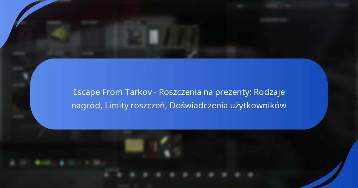 W Escape From Tarkov gracze mają możliwość zdobywania różnych nagród, w tym przedmiotów w grze, ekskluzywnych Twitch Drops oraz ofert sezonowych. Każdy typ nagrody ma określone limity, które mogą wpływać na satysfakcję graczy i ogólne doświadczenie w grze. Zrozumienie tych limitów jest kluczowe dla maksymalizacji korzyści z roszczeń i poprawy doświadczenia w grze.
