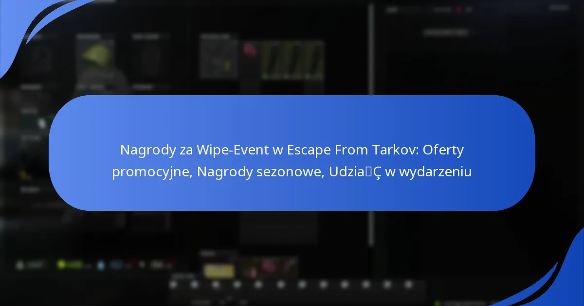 Podczas wydarzeń wipe w Escape From Tarkov, gracze mogą zdobyć różne sezonowe nagrody, które wzbogacają ich doświadczenia w grze. Nagrody te zazwyczaj obejmują unikalne przedmioty, walutę w grze i oferty promocyjne, które mogą znacznie przynieść korzyści graczom w miarę postępów w grze.
